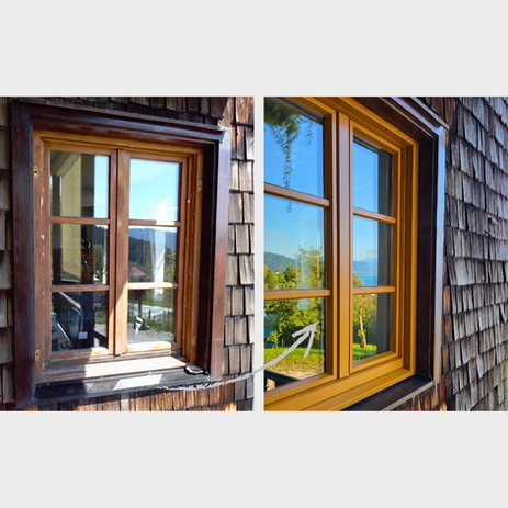 Unsere maßgefertigten Aluverkleidungen sind nicht nur optisch ein echtes Upgrade, sondern auch technisch durchdacht: Von 2-flügeligen Fenstern mit oder ohne Sprossen bis hin zu Spezialformen wie Rundbogen, Segmentbogen oder Glasteilenden Sprossenrahmen – wir sanieren präzise, individuell und mit dem Blick fürs Ganze.